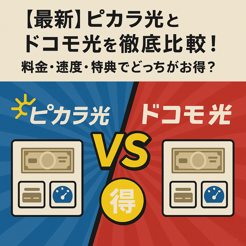 2025年の光回線選びで迷っている方の中でも、四国エリアで人気の「ピカラ光」と全国対応の「ドコモ光」は、特に比較されやすい2大ブランドです。どちらも高品質な光回線として知られていますが、実際に料金・速度・特典・評判を詳しく見ていくと「自分に向...
