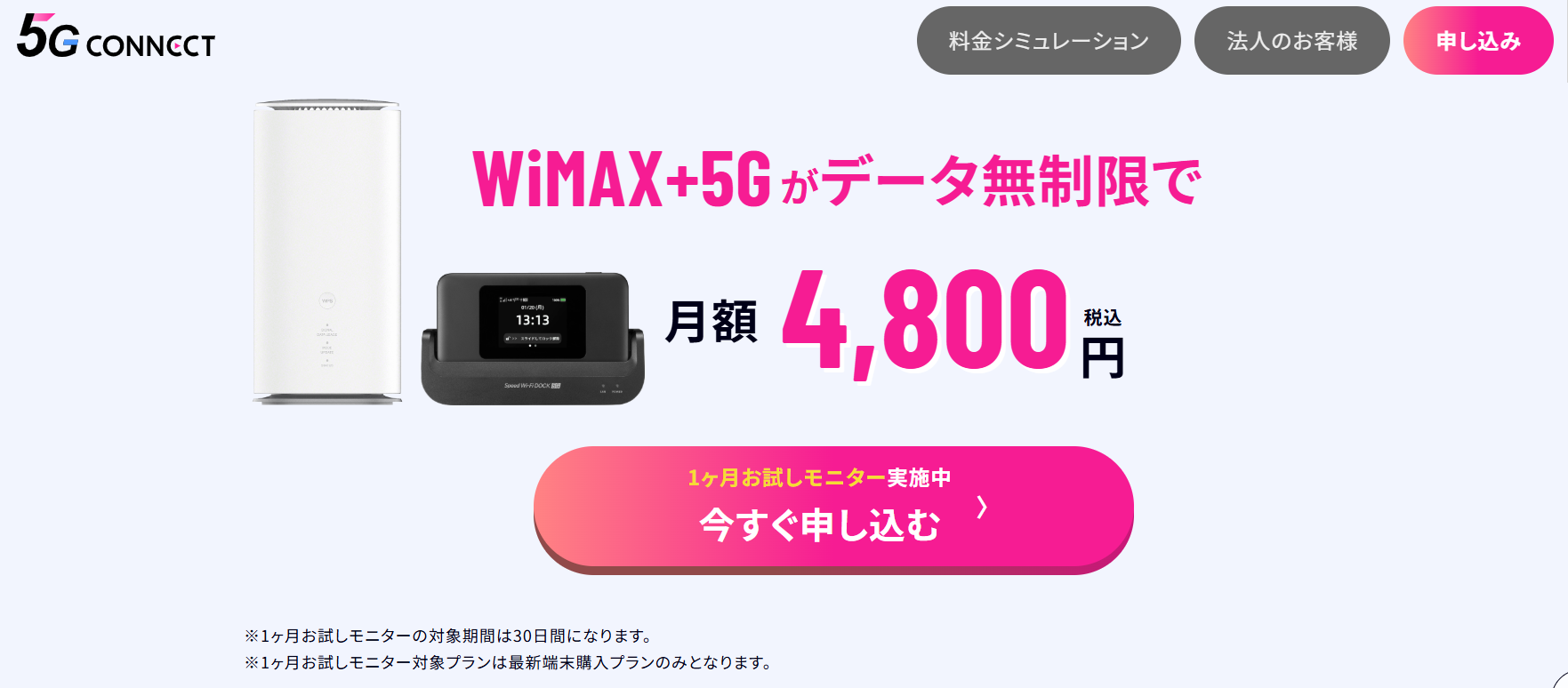 例えば「5G CONNECT」は違約金なし。WiMAX系でも契約縛りなしプランが出てきています。