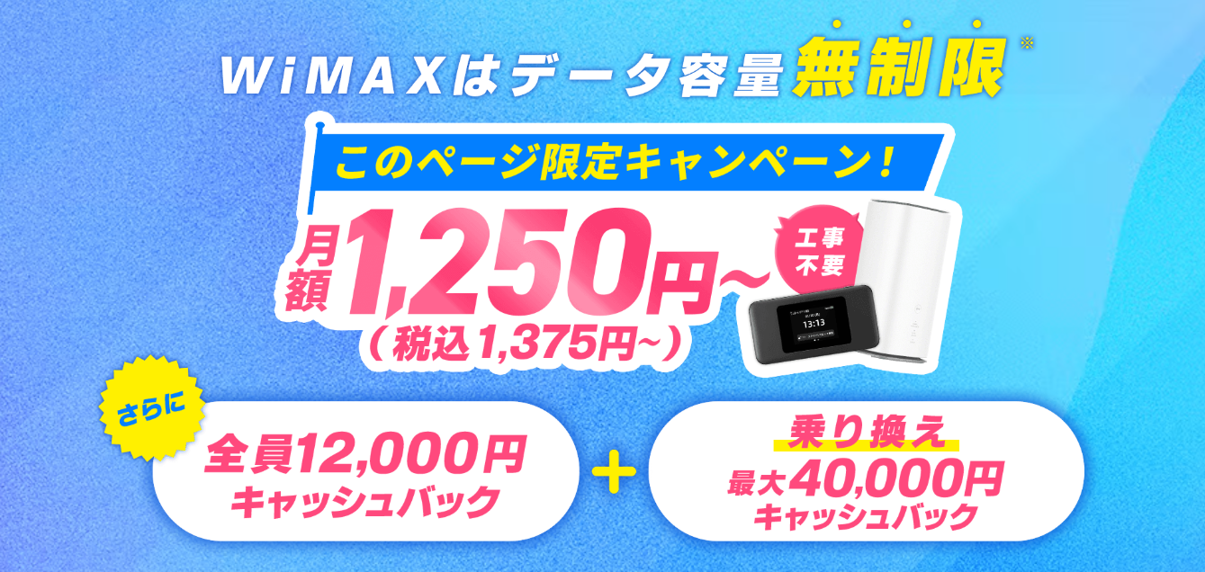GMOとくとくBB WiMAXのキャンペーンは、他社と差別化されるポイントです。