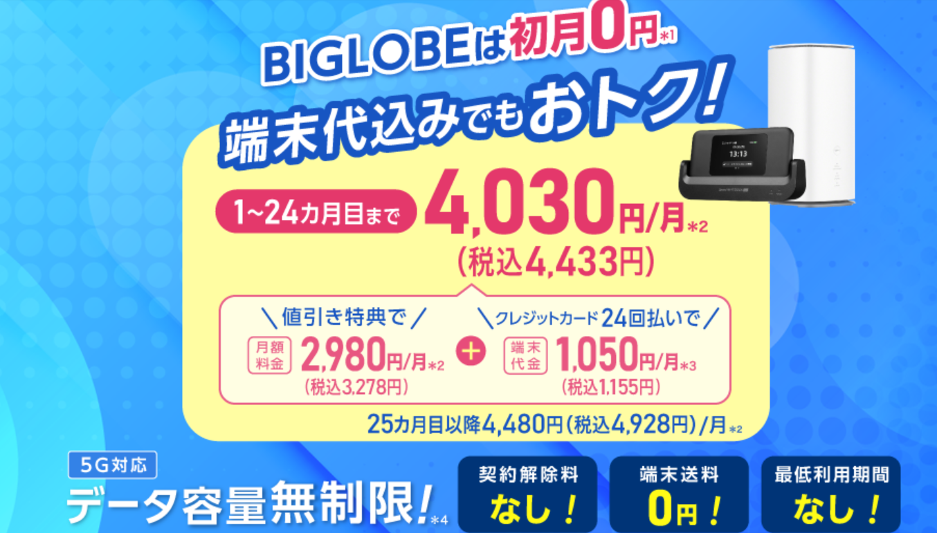 - サポートの安心感で選ぶなら BIGLOBE WiMAX