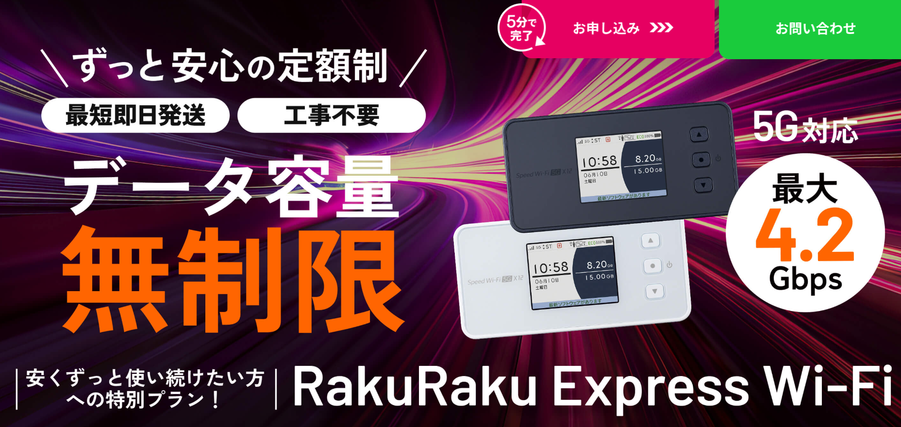 2025年最新版のモバイルWi-Fiとして注目を集めているのが「RakuRakuExpress Wi-Fi」です。