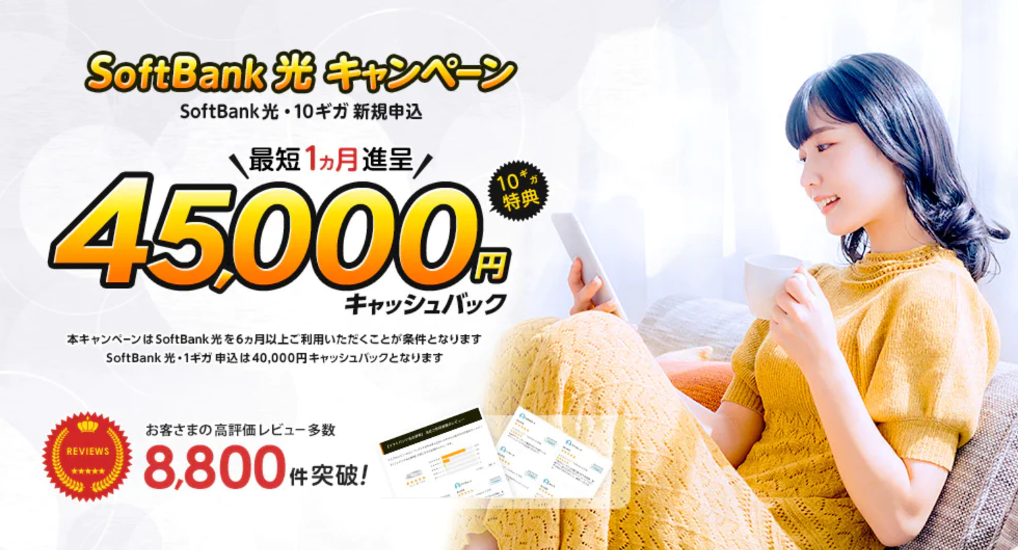ソフトバンク光はキャンペーンが非常に豊富で、初期費用を抑えやすいのが大きなメリットです。