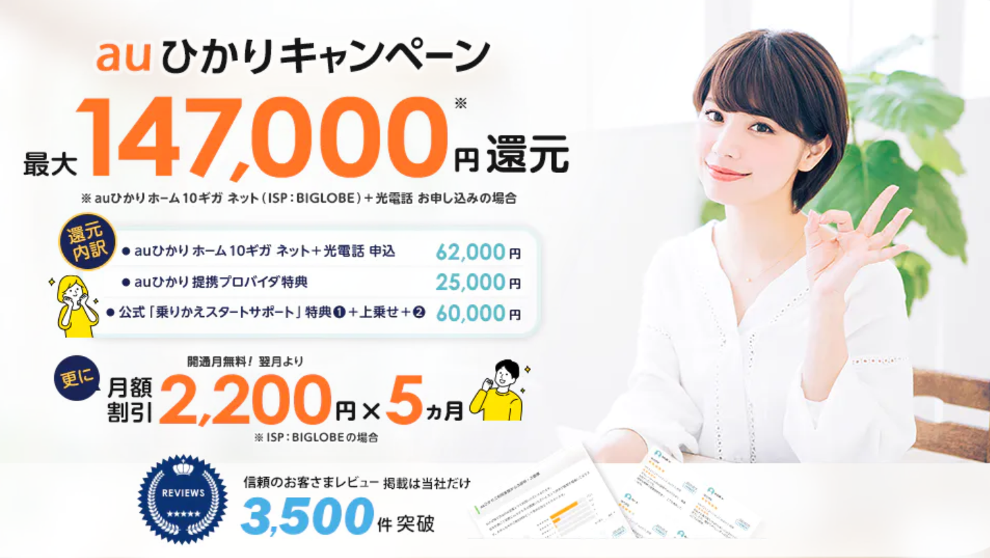 - 最近は「違約金補填」や「工事費実質無料」の特典が多く、負担が少なくなっています。