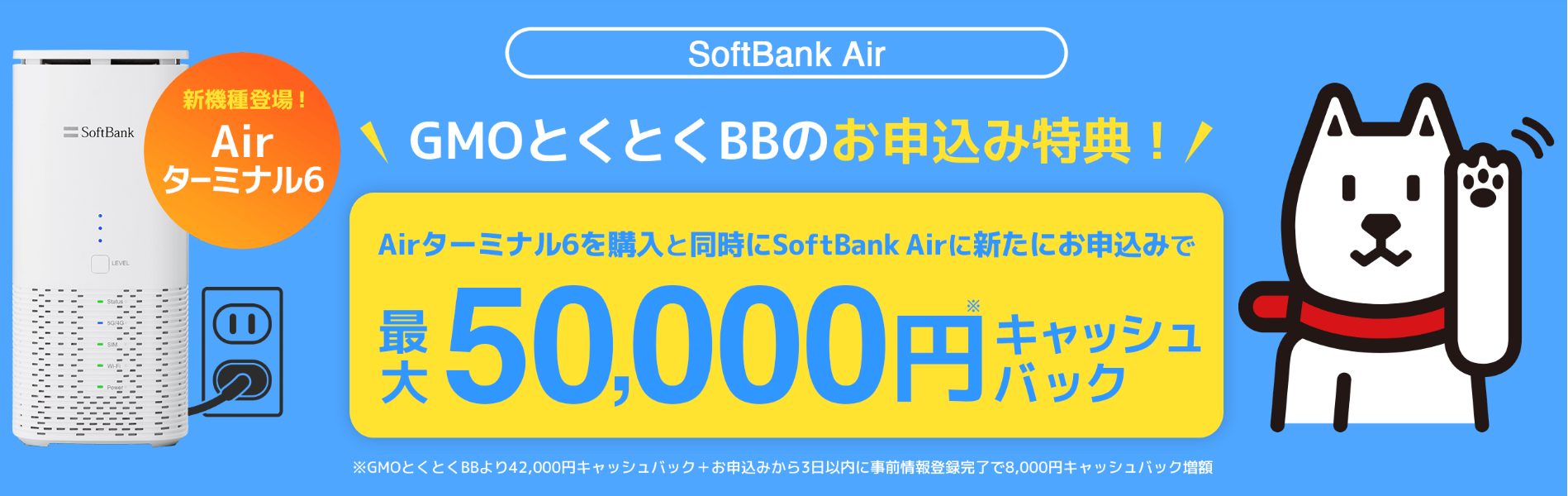 ソフトバンクエアー | 約5,368円 | 3,300円 | 50,000円 | 約150Mbps | 不要 | 手軽・スマホ割あり |