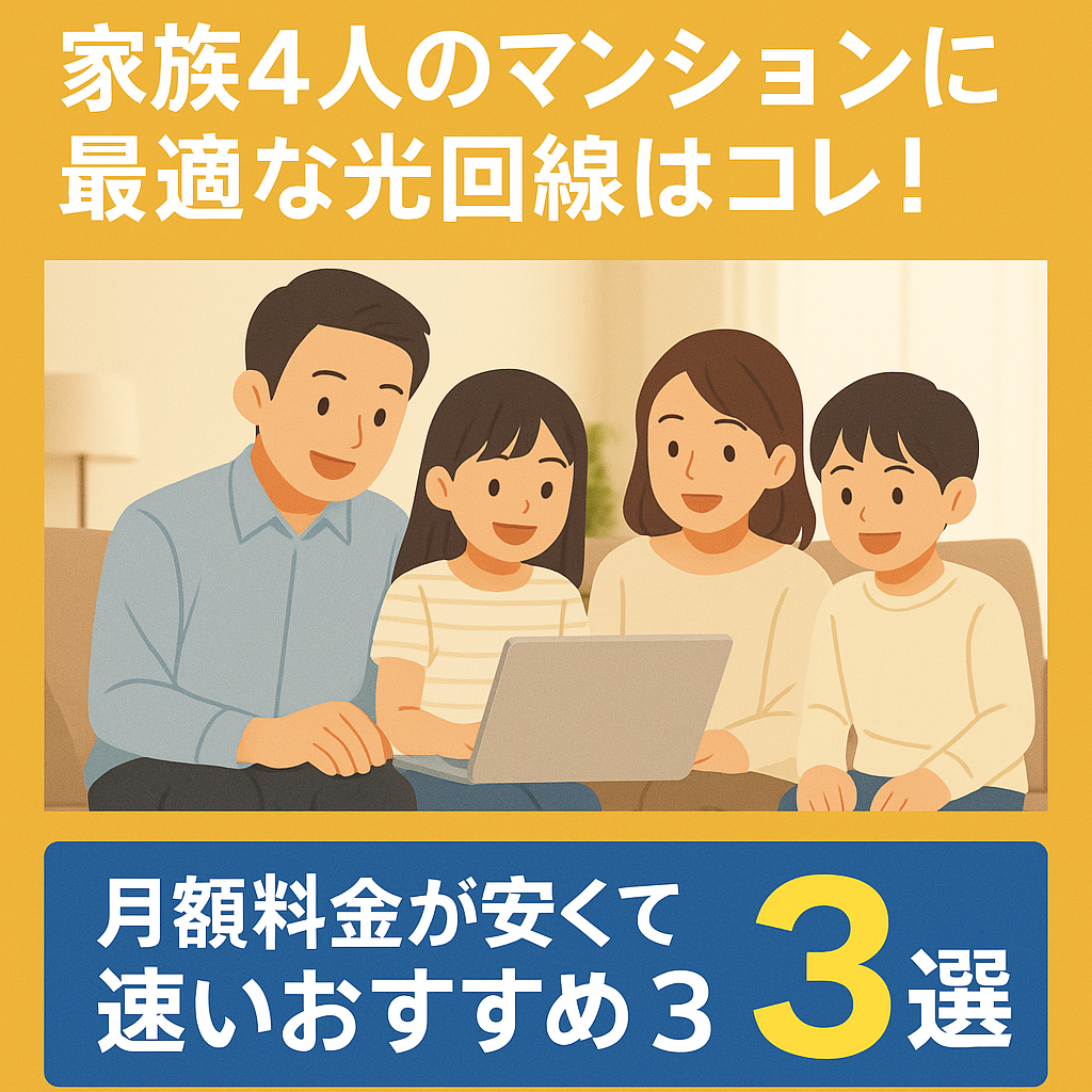 家族4人でマンションに住む場合、光回線選びは「速度」「料金」「安定性」の3つを軸に考えるのがポイントです。以下に簡潔にまとめます。