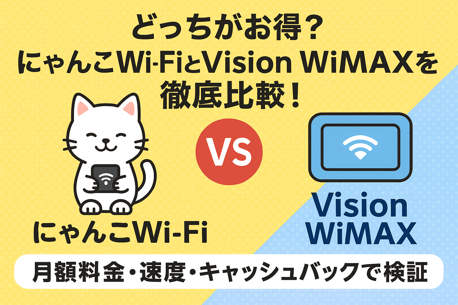 | 比較項目 | にゃんこWi-Fi | Vision WiMAX |
