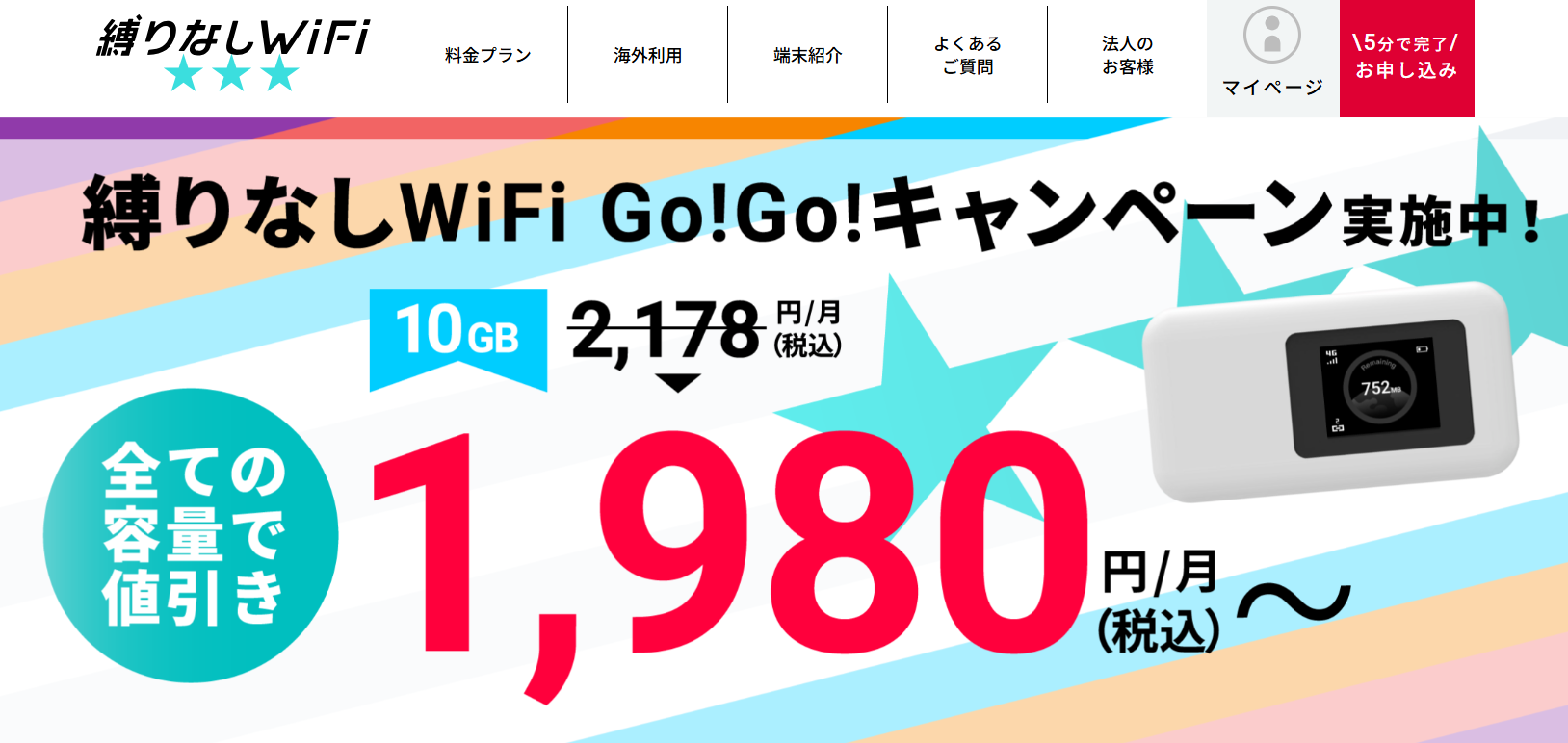 WiFiサービスの中でも「契約期間の縛りがない」として話題の縛りなしWiFi