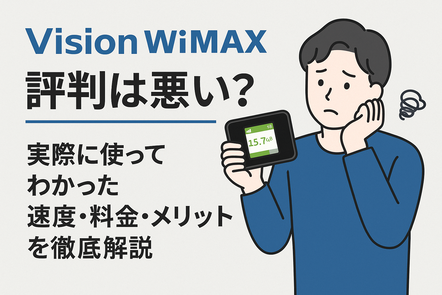 この記事では、実際にVision WiMAXを使ってみた私が、速度・料金・メリット・口コミ・他社との違いまで徹底検証しました。