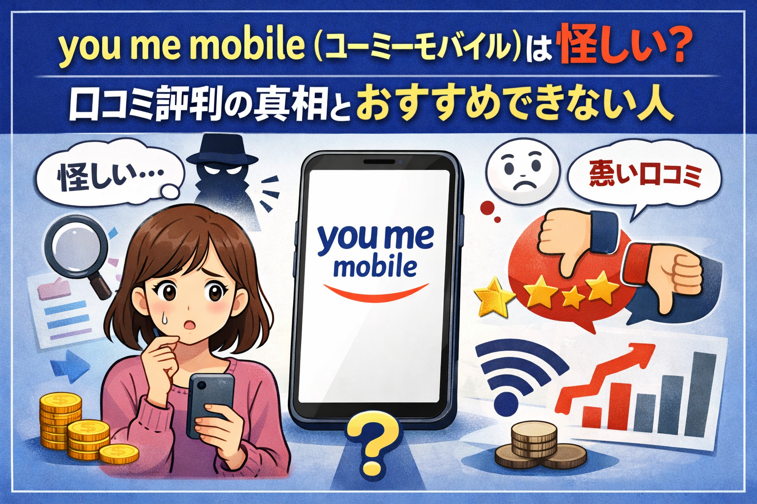 ここでは、ユーミーモバイルがなぜ怪しいと言われてしまうのかを、感情論ではなく冷静に検証していきます。